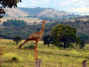 Ok, let’s see if I can stick a picture in here too. Might as well go for broke…. And there it is. Woot! Ok, you are looking at a picture of one of the coolest birds ever. It is a Red-Legged Seriema. It stands about 36″ tall and is native to Brazil. I got to see one this summer. This is a picture off the web as I didn’t get the camera out fast enough and sorry, /cringe, I didn’t write down who took the picture. So it isn’t mine, but it is a nifty shot. Way to go, whoever you are.