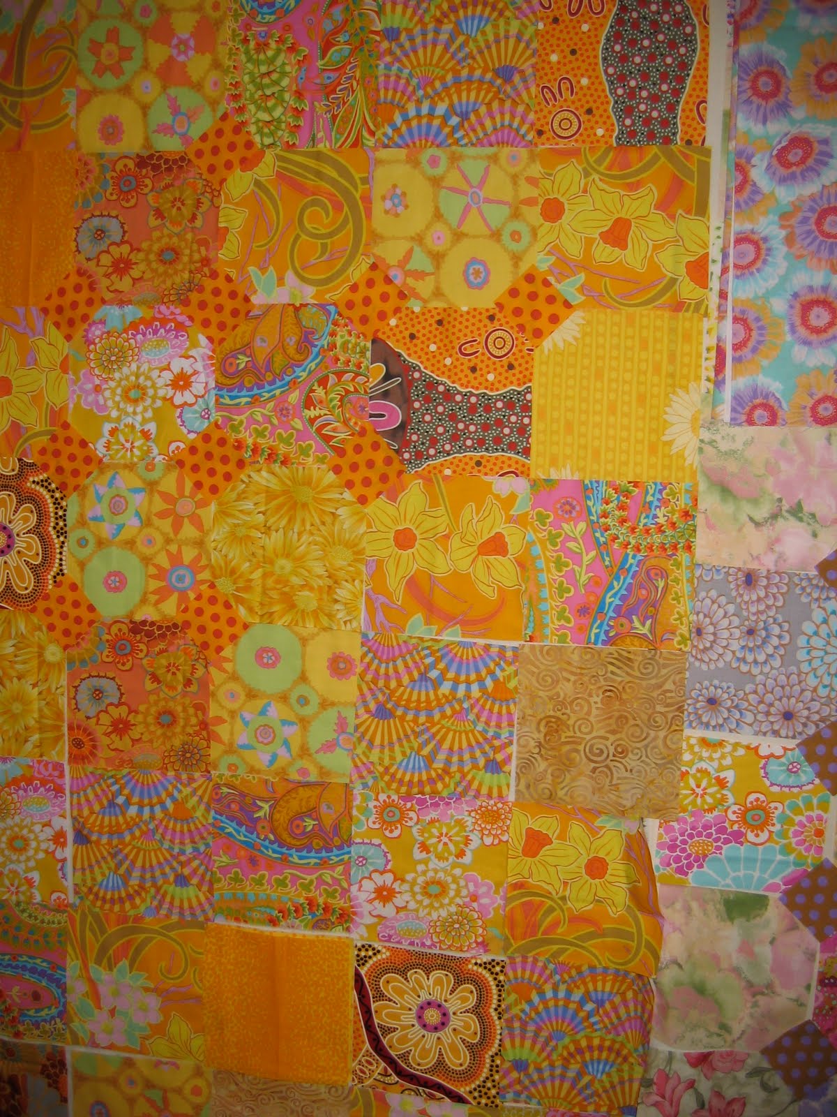 A good portion of my fabrics came from Glorious Color which is run by Liza. I ordered on a Wednesday and received my fabric on Saturday. Fabulous service. There’s also a neat feature on their website, “created by a math geek out of Berkeley” according to Liza. It’s color ribbons. Click on a ribbon and it shows you what fabrics are in that range. Really fantastic for matching fabrics. Go check it out.