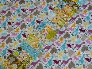 I just finished this lovely baby quilt last night. Rail fence has to been one of my favorite patterns. I made this for some friends who are expecting a new arrival any day now. This is made from Kate Spain’s new Central Park line. It’s such a delightful, springy line and a much needed visual break from the three days of snow we’ve had. I’m actually looking forward to mud.